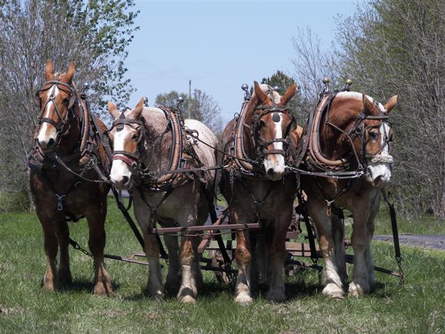 Miami Friends Youth Second Annual Plowing. Done on April 7, 2007 at Quaker Valley Farms in Miami, OK. Corn seed will be spread in two weeks and harvest is in July. Proceeds are used to fund youth mission trips, conferences, and church camps. (These horses are preparing to plow the final row).